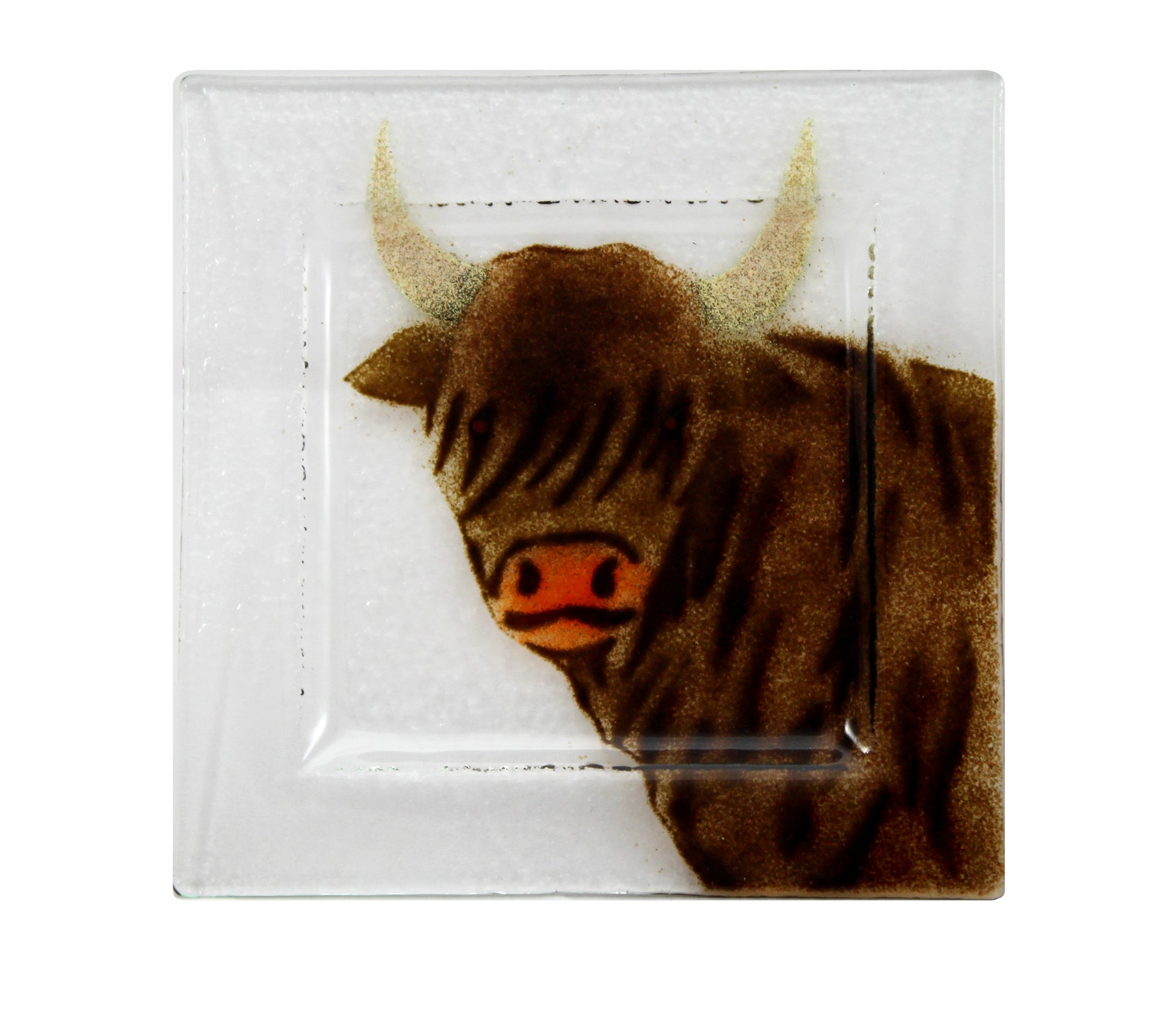 Delightful fused glass Highland Cow small plate. Ideal for presenting treats, snacks, canapes.