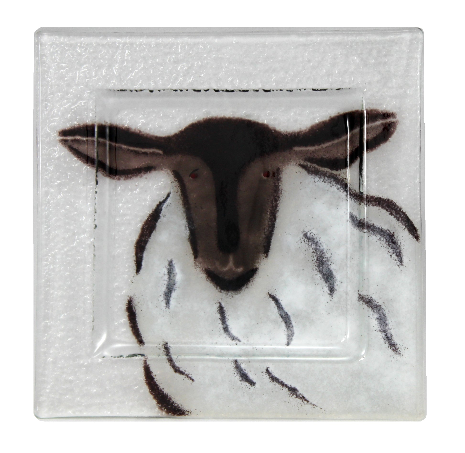 D & J Glassware Sheep Fused Glass Plate, Handcrafted