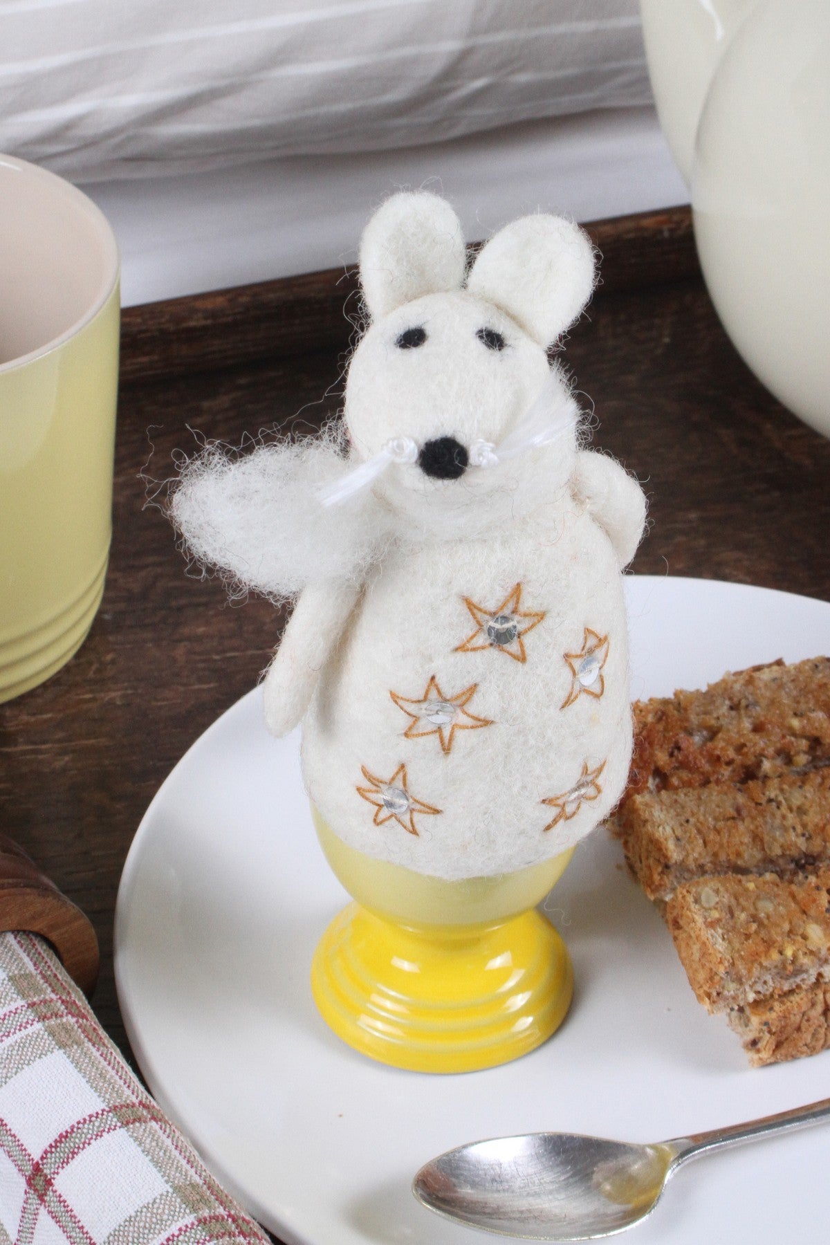 Pachamama Angel Mouse Egg Cosy, Hand Felted, Fair Trade Sourced