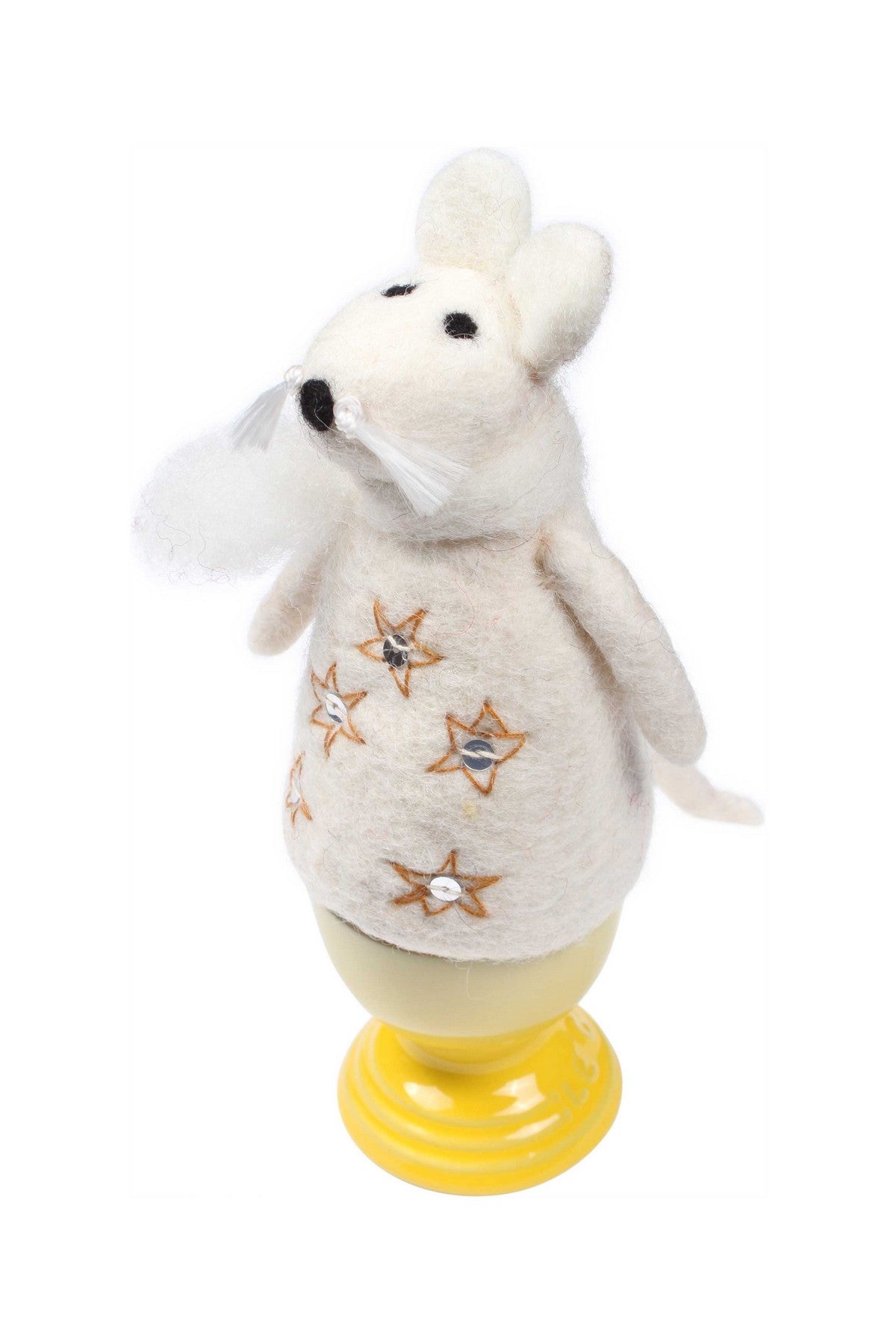 Pachamama hand felted Angel mouse wool egg cosy. Felt table decoration that is stylish and fun. 100% wool. Fair trade and hand crafted in Nepal.