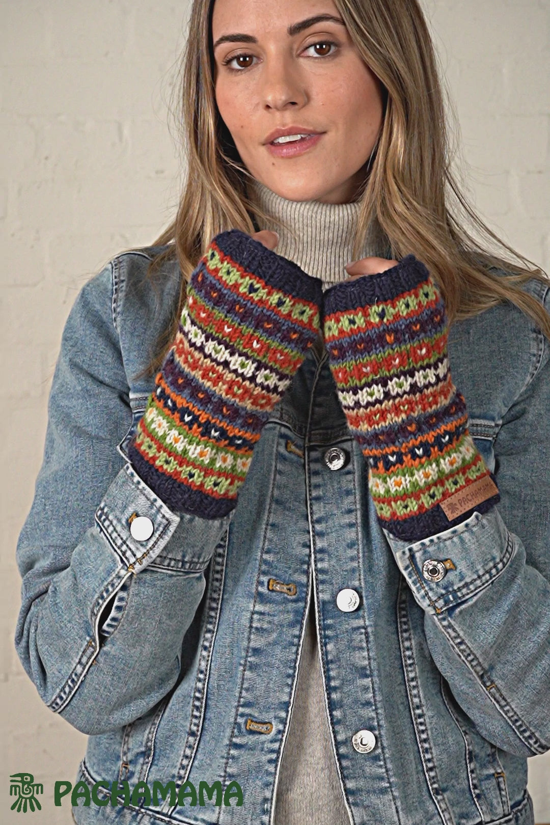 Pachamama Colorado Handwarmers, Hand Knitted, Lined, Wool, Fair Trade Sourced