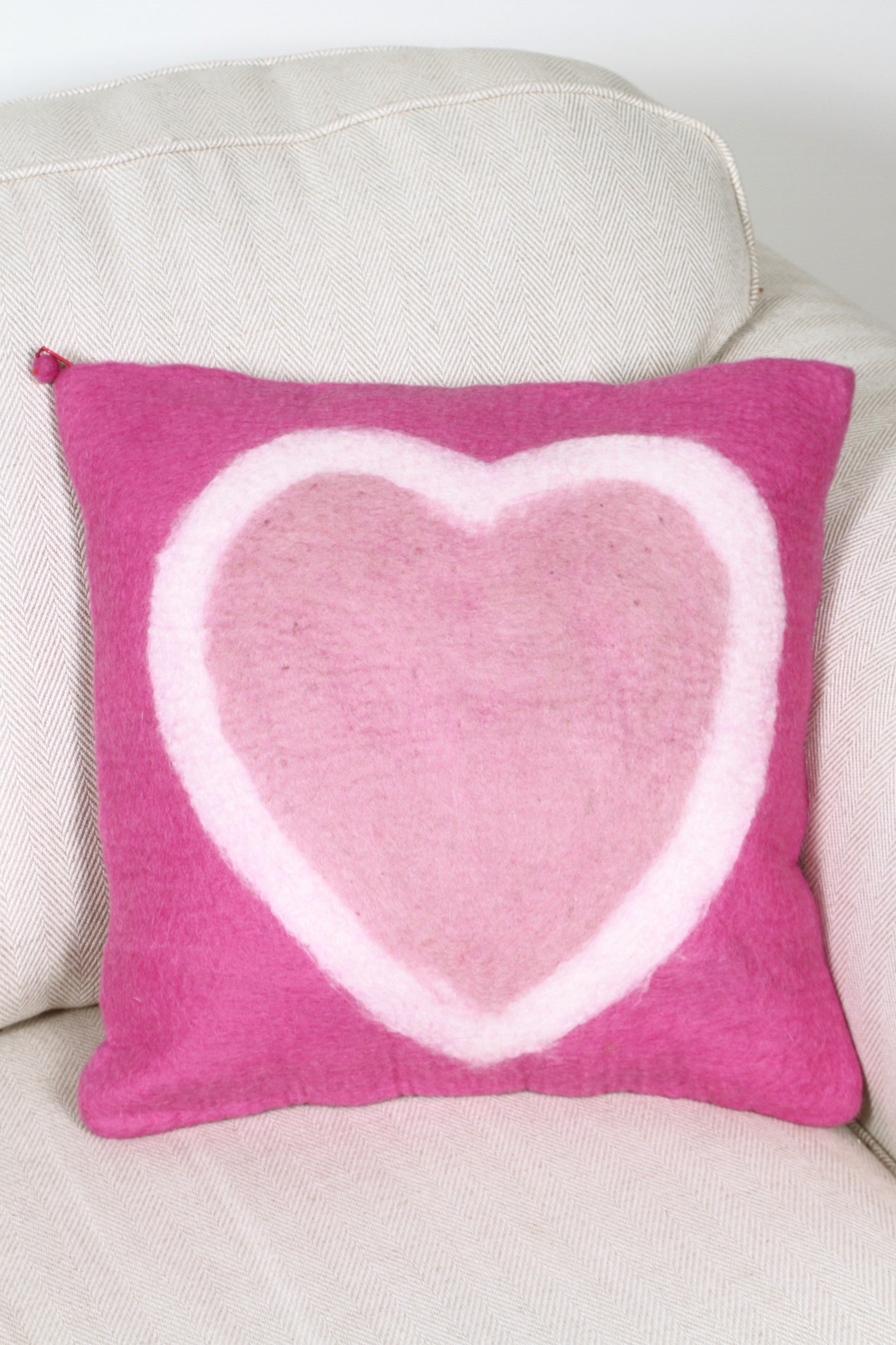 Pachamama Felted Heart Cushion In Pink With Cushion Insert And Zip Closure