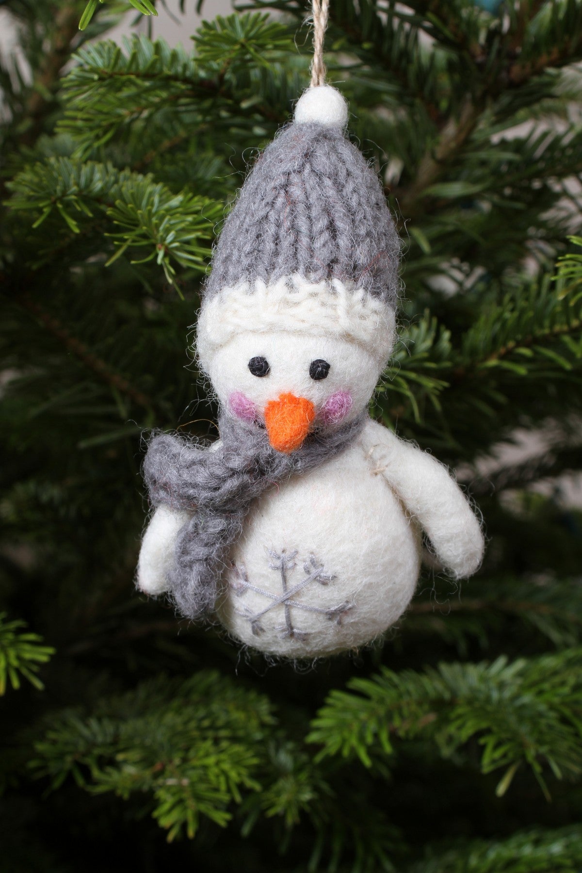 This delightful Mrs Snow felt snowman xmas tree decoration, or hanging home decoration is Fair trade sourced by Pachamama and hand crafted in Nepal.