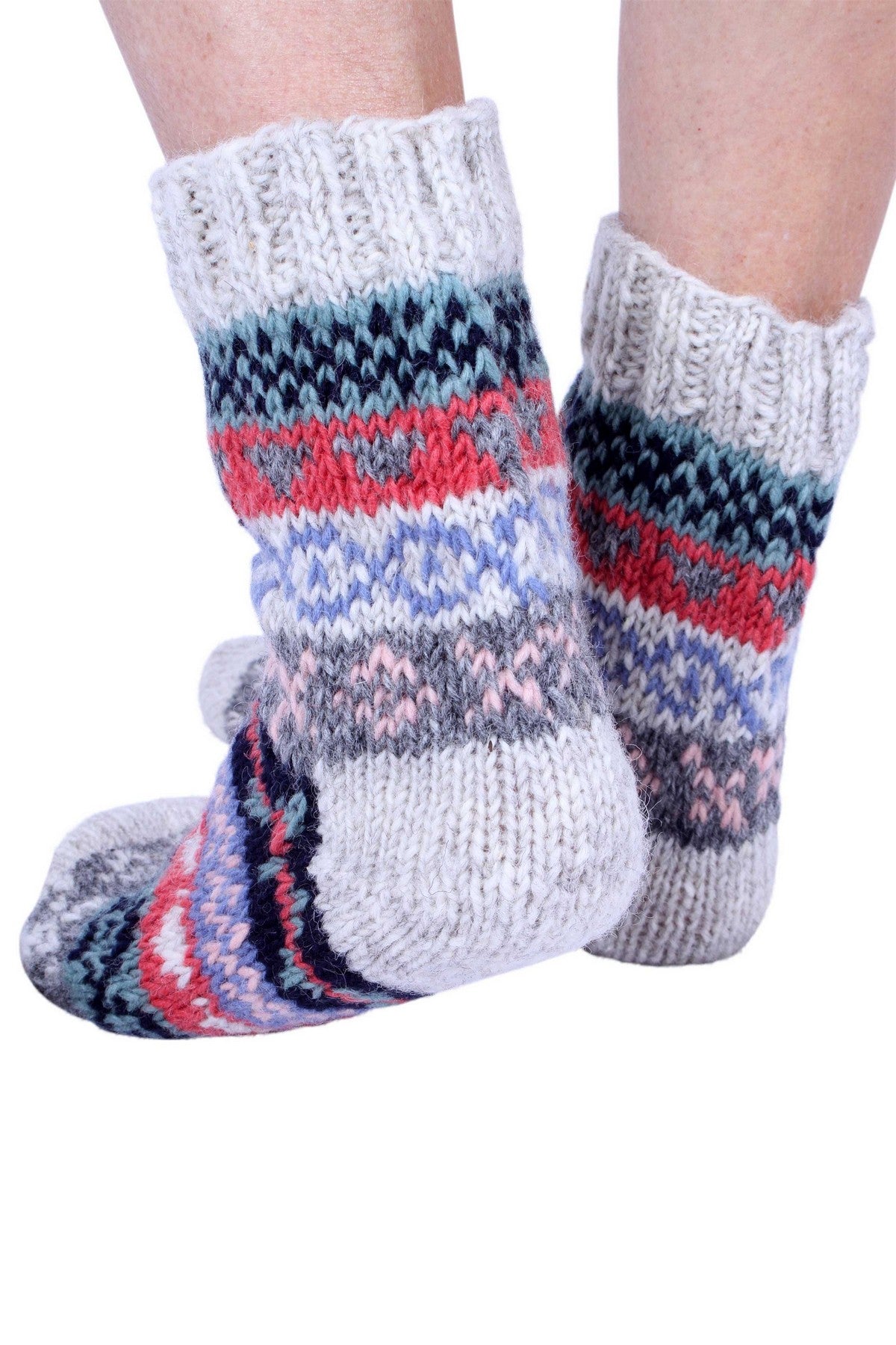Pachamama Classic Fairisle Sofa Socks , Hand Made, 100% Wool, Fair Trade Sourced