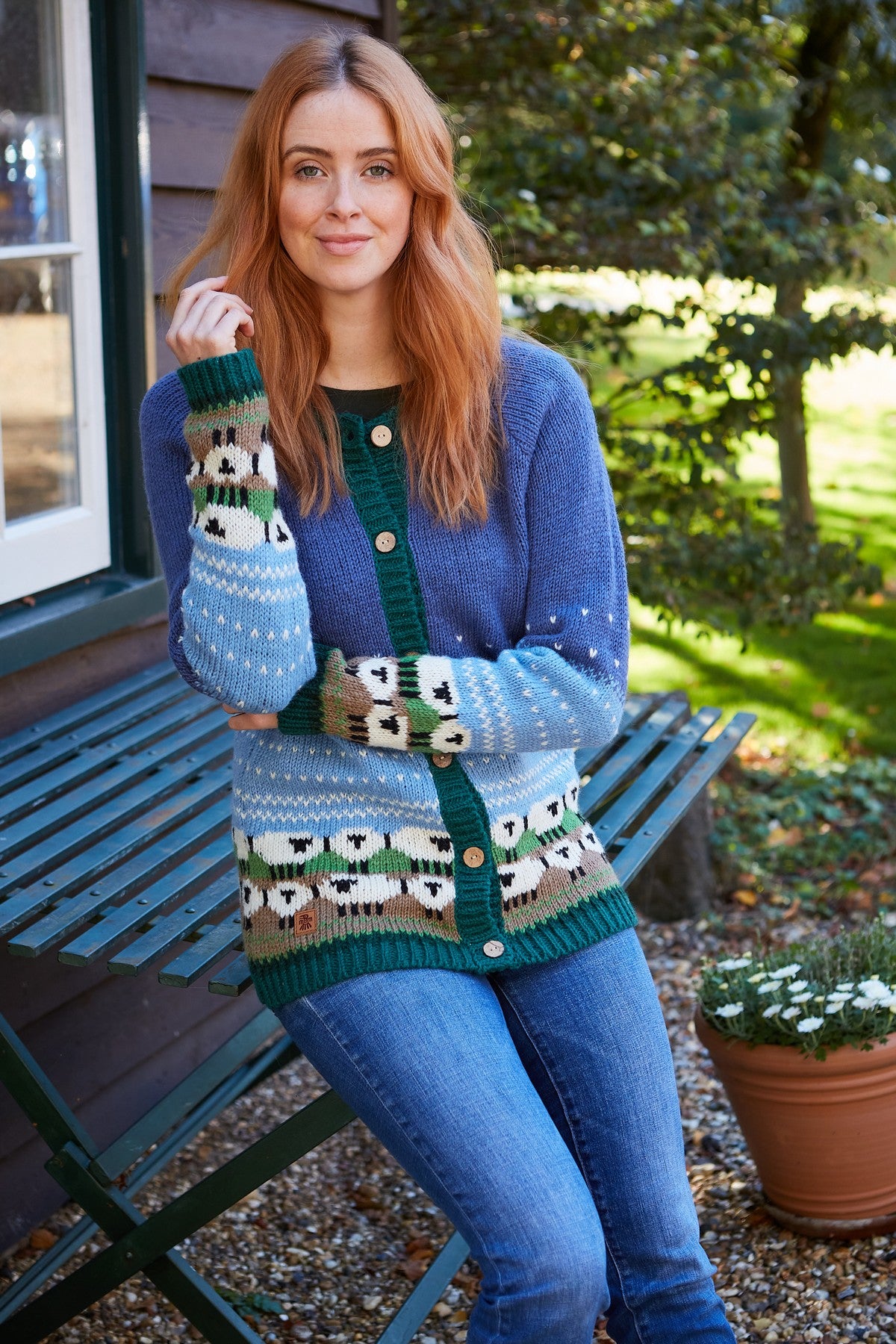 Pachamama Sheep Cardigan, Hand Knitted, Fair Trade Sourced, 100% Wool