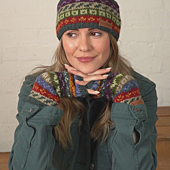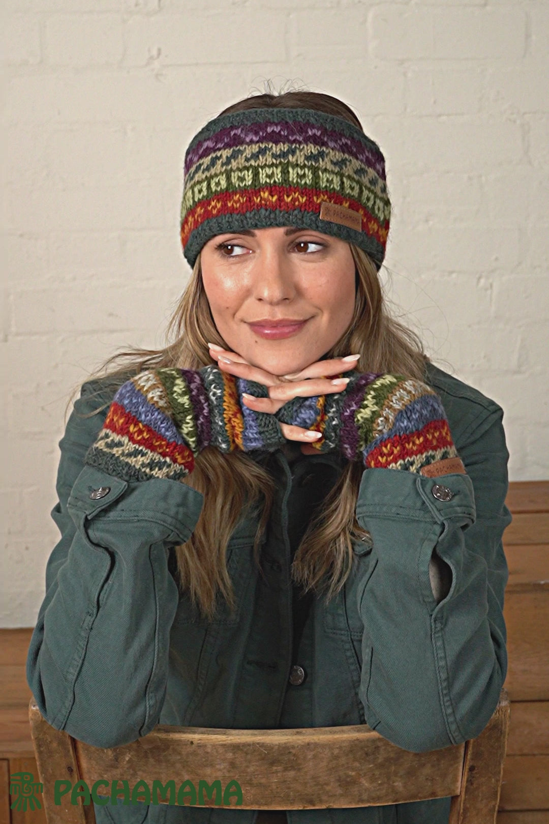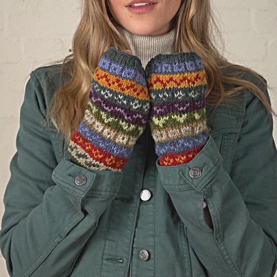 Pachamama Elveden Handwarmer, Hand Knitted, Lined, Wool, Fairisle Multicoloured