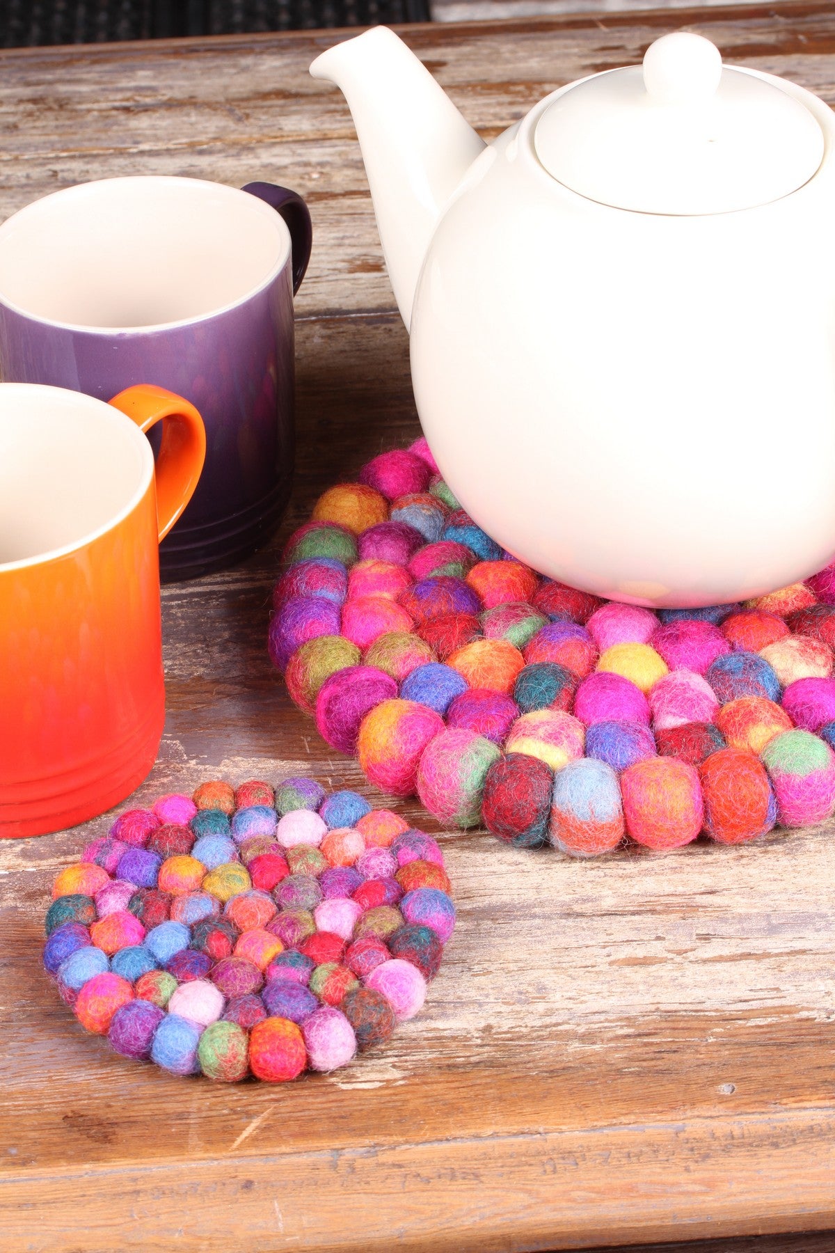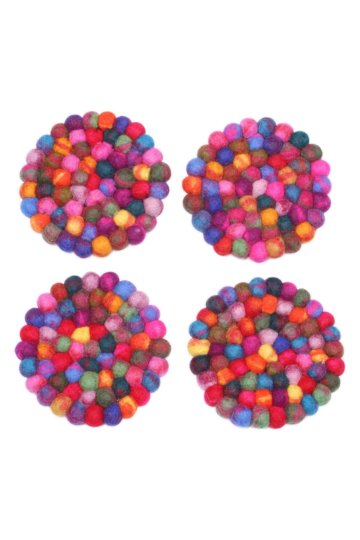- The balls are hand felted and crafted into individual coasters, all a little unique