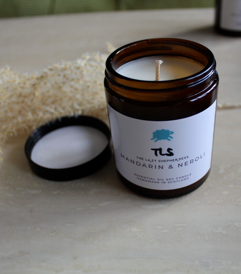 The Lazy Shepherdess Mandarin & Neroli Soy Wax Candle, 180ml, Handmade