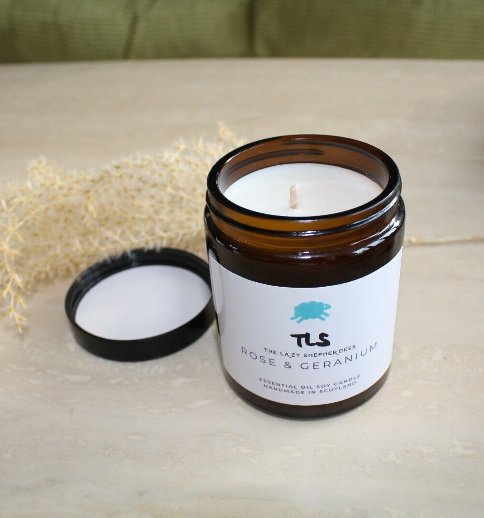 The Lazy Shepherdess Rose & Geranium Soy Wax Candle, 180ml